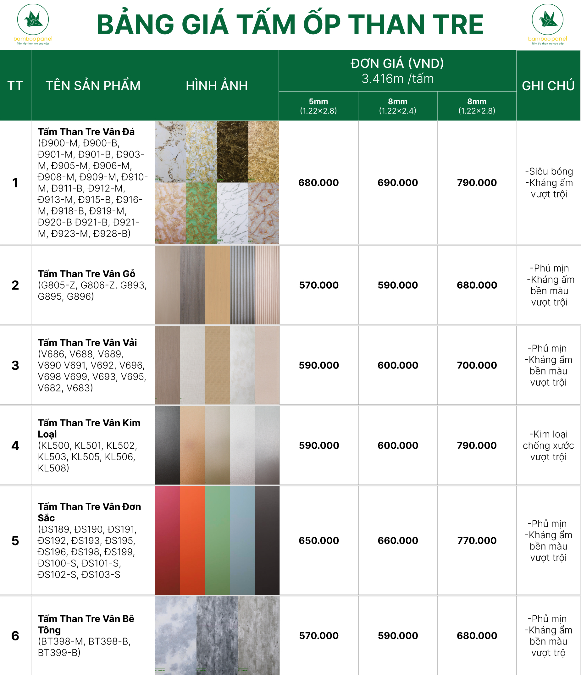 1. Bảng Báo Giá Tấm Ốp Than Tre